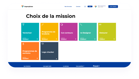 Équipez-vous de Superpictor et sous-traitez des programmes de broderie de qualité à prix mini en France répondez en 5 min avec visuel & B.A.T à toutes vos demandes clients estimez vos points de broderie en 2 clics divisez par 2 les erreurs de commande